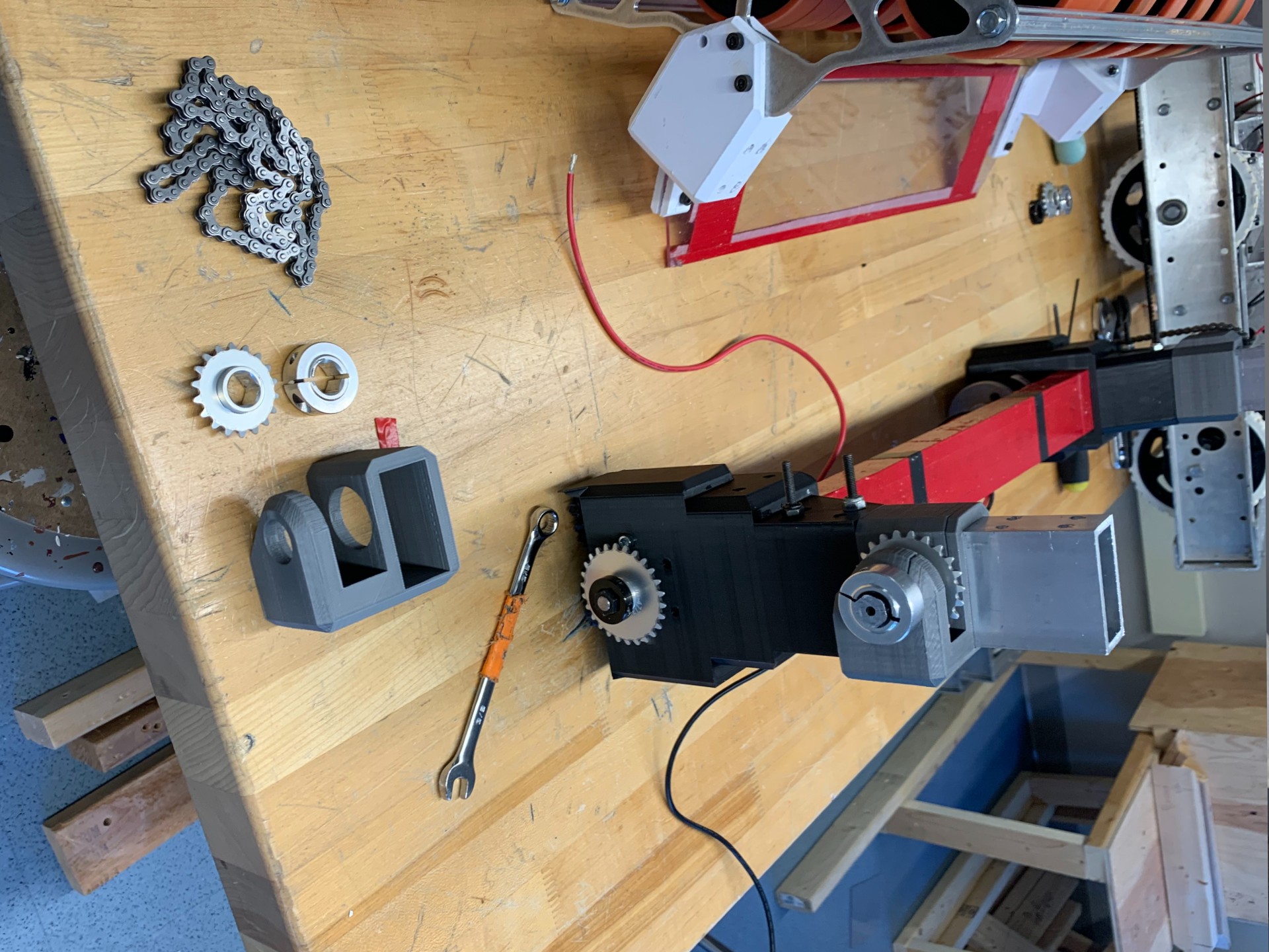 My design was heavily inspired by Cranberry Alarm’s Ri3D robot. The design included an over-the-bumper dual-spinner intake with a custom static chain-driven active shooter. We started by prototyping mechanisms individually by 3D-printing fixtures and laser cutting plates out of plywood for assembling quick test subsystems using spare parts. This helped us iterate on geometry, compression, and power transmission before committing to a full design.